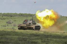 T-55 Tank sends a blast downrange as it takes part in a live-fire exercise